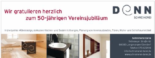 Wir danken allen, die uns bei der Organisation und bei der Erstellung der Festschrift unterstützt haben, sei es mit Anzeigen oder einem Spendenbeitrag. Ohne Sponsoren würde manches im Verein nicht möglich sein. Vielen Dank nochmals für Ihre / Eure freundliche Unterstützung!